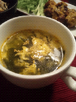 @お鍋に水とワカメを加え、沸騰したら『味の素kk丸鶏がらスープ』を加える